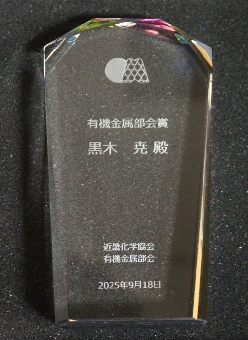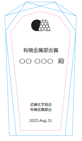 2025年度より『有機金属部会賞』を創設し、近畿化学協会有機金属部会の会員の中で、優れた有機金属化学分野の研究を行っている若手研究者、個人に授与します。